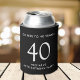 Mit diesem lustigen schwarzen Dosenkühler mit "Cheers to 40 Years" und dem Namen in einer weißen Schrift heben Sie Ihren Toast in Ihrem 40. Party auf.