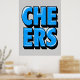 CHEERS Bold Blue Text Poster - Retro Pop Style
