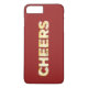 "Cheers" geschrieben in Vintagen goldfarbenen Lichter betont dieses iPhone 7 Plus Fall auf einem kranberry roten Hintergrund, sodass ein festliches Weihnachtsgeschenk.