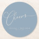 Cheers Minimal Dusty Blue Script Custom Wedding Runder Pappuntersetzer