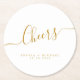 Cheers Minimal Gold Script Custom Wedding Round Paper Untersetzer. Einfach anzupassen. Bestelle noch heute!