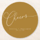 Cheers Minimal Mustard Gold Script Custom Wedding Runder Pappuntersetzer