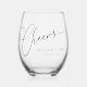 Cheers Minimale Schwarz-weiße Skripte Custom Wedding Stemless Wine Glass