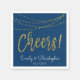 Cheers Navy Blue und Imitate Gold Foil String Lights Hochzeiten Napkins für einen eleganten Hochzeitstag Empfang oder Probe Dinner. Der Name und das Datum können auf dieser Serviette aktualisiert werden.