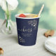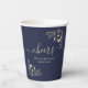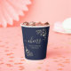 Feiern Sie stilvoll mit diesen eleganten marineblauen Hochzeitspapiertassen, die das Wort Beifall in fließender Goldkalligraphie bieten. Diese Tassen sind mit Vintagen Blumenbildern geschmückt und sorgen für eine romantische und raffinierte Touch zu Ihrer Cocktailstunde, Ihrem Empfang oder Ihrer Getränkestation.
