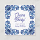 Cheers thirty birthday royal blue floral border na quadratische visitenkarte