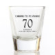 Raise a toast with this 70th birthday shot glass that features the phrase “Cheers to 70 Years” in simple modern lettering and the guest of honor’s name and milestone year.