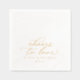 Cheers Wedding Napkins – These elegant wedding napkins feature the phrase “cheers to love” in graceful gold calligraphy script. The simple, modern typography creates a timeless look that’s perfect for the bride and groom’s celebration. Ideal for wedding receptions, cocktail hours, or engagement parties, these napkins add a warm, sophisticated touch to your décor.