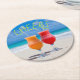 Papier trinken Bänke mit "Beifall" Text und tropische Cocktails auf einem tropischen Strand Bild. Erfrischende Fruchtsäfte mit Strohhalmen liegen in einem Stück Paradies mit Sonnenschein, türkisfarbenem Wasser und blauen Himmeln. Die Aufnahmen verlaufen oben, und dieses Bild passt am besten zu runden Untersetzer. Entfernen Sie die Formulierung, und sie funktioniert auf fast allen. Untersetzer drucken, während sie in der Vorschau sehen.