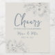 Elegantes, Vintages, einfaches, blumengemauertes Hochzeitsweinetikett mit Perwinkelspitze und einfachem handgeschriebenem Drehbuch. Prost!