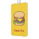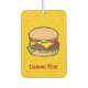 Darstellung des Cartoon von Cheeseburger. Junk Food Kontur Icons Gelbe Muster Hintergrund. Benutzerdefinierter Text auf beiden Seiten.
