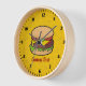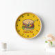 Cheeseburger Cartoon Illustration auf gelben Junk Food nahtlosen Hintergrund. Eigener Text.