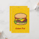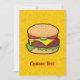 Darstellung des Cartoon von Cheeseburger. Junk Food Kontur Icons Gelbe Muster Hintergrund. Benutzerdefinierter Text auf beiden Seiten.
