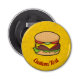 Darstellung des Cartoon von Cheeseburger. Junk Food Kontur Icons Gelbe Muster Hintergrund. Eigener Text.