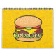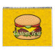 Darstellung des Cartoon von Cheeseburger. Junk Food Kontur Icons Gelbe Muster Hintergrund. Eigener Text.