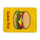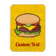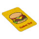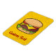 Darstellung des Cartoon von Cheeseburger. Junk Food Kontur Icons Gelbe Muster Hintergrund. Eigener Text.