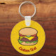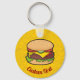 Darstellung des Cartoon von Cheeseburger. Nahtlos gelber Fastfood-Hintergrund. Benutzerdefinierter Text auf beiden Seiten.
