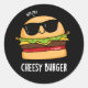 Cheesy Burger Funny Food Puns Dark BG Runder Aufkleber