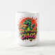 Ein spielerischer Drache mit Hörnern liebt ein fröhliches Pizzaschnitt und verkörpert das Chaos eines lustigen und köstlichen Pizza-Party.