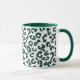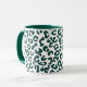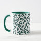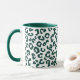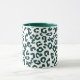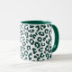 Tasse des Kaffees in einem digitalen, minimalistischen, tierischen Ausdruck in einem Geparden - Flecken in tiefgrünem Kieferngrün auf weißem Hintergrund