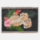 Cheetah Bouquet II von Annie Warren. Zwei Geparden sind von tropischen Blätter und Pflanzen gerahmt, die auf schwarzem Hintergrund gehalten sind. | 164453Z