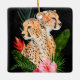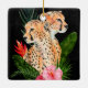 Cheetah Bouquet II von Annie Warren. Zwei Geparden sind von tropischen Blätter und Pflanzen gerahmt, die auf schwarzem Hintergrund gehalten sind. | 164453Z