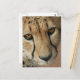 Unschuldig aussehende Geparden-Katze, die eine Angriffskarte in Erwägung zieht.