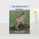 Eine Geburtstagskarte für Menschen, die eine wilde Zeit Liebe. Diese Karte hat ein fantastisches Foto von einer wunderschönen Geparden und kann mit dem Namen des Geburtstagsmädchens, Junge, Frau oder Mann personalisiert werden. Der Text kann bearbeitet werden, um zu sagen, welcher Geburtstag es ist - 20., 30., 40. etc.