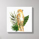 Cheetah Outlook I von Annie Warren. Ein Gepard im Aquarellstil mit tropisch grünen Blätter im Hintergrund. | 164730Z
