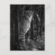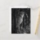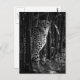 Eine Postkarte mit einem schwarz-weißen Foto einer in Bambus stehenden Geparde.