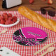 Chef in Hot Pink, Weiß und Schwarz Pappteller