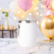 Schreibe in das große Feld: „Hochwertiger Trinkbecher mit modernem Business-Logo für das Büro oder unterwegs