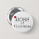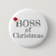 Erklären Sie, dass Sie der Chef verantwortlich für die Festlichkeiten und die Dekoration weil Sie Liebe Weihnachten mehr als alles, indem Sie diesen humorvollen lustigen Knopf mit einer roten Sankt Hut und rustikale tragen, Typografie sind.