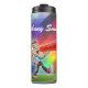 Chefredakteur mit farbenprächtigem Hintergrund per Thermosbecher
