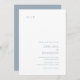 Moderne Hochzeitseinladung mit einem einfachen und minimalistischen Layout mit dem Monogramm in der oberen links Ecke und den Einzelheiten Ihrer Hochzeit in der unteren rechten Ecke. Alle Designelemente sind in staubblauer Farbe und können im Designbearbeitungstool geändert werden. Diese Hochzeitseinladung mit einem minimalen, aber eleganten Design passt gut zu jedem zeitgenössischen Hochzeitsstil.