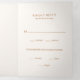 Moderne dreispurige Hochzeitseinladung mit einem einfachen und minimalistischen Layout mit dem Monogramm in der oberen links Ecke und den Einzelheiten Ihrer Hochzeit in der unteren rechten Ecke. Die mittlere Leiste hat Ihr Lieblings-Foto, die rechte Leiste hat die UAWG Postkarte und die Rückseite hat die Einschließungskarte. Alle Designelemente sind in Terrakotta / gebrannt orange / rost / kupfer über einen Elfenbeinhintergrund und können im Designbearbeitungstool geändert werden. Dieses schicke und elegante Design mit natürlichen Erdtönen passt perfekt zu jeder Hochzeitsart.