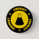 Gelbes Knopf-Button des Schwarzen und der Vorsicht mit Collegeartbeschriftung und Erlenmeyer-Kolben.