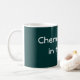 Weiße und türkisfarbene Tasse mit dem weißen Text "Chemiker machen das im Labrador". Ein kleines Geschenk, um dem Wissenschaftler in Ihrem Leben zu geben, ob es sich dabei um einen Verwandten oder Professor handelt!