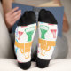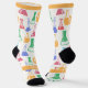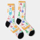 White and yellow socks with colorful test tubes. A thank you to the brilliant scientists who provide us with so many new products.