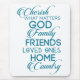 Cherish What Matters Design mit einer klassischen, zeitlosen Botschaft in aquamarinem Grün.