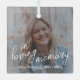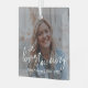 Elegant memorial pin with script typography, a custom photo and personalized message.