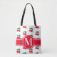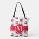 Cherries Fruchtrot Muster Monogram WhiteTote Beute