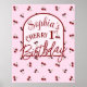 Ein bezauberndes Kirschdesign, um den ersten Geburtstag deines Kleinen zu feiern. Dieses Kirschplakat verleiht einen Hauch von Launen und Vintagem Charme. Dieses einzigartige Kunstwerk hat verschiedene Töne von Scharlach, Rose, Violett und Chartreuse. Ändern Sie die Hintergrundfarbe, die Grafik und den Text, um vollständig personalisieren und anpassen.