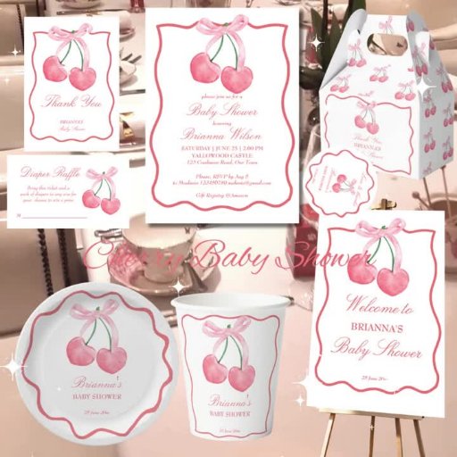 Cherry baby shower invitations party suppliesDesignt von Ieva Jenciute