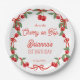 Cherry auf der oberen Band whimsical Geburtstagsparty mit Monogramm Papier Teller Vorlage, niedliche Kirschen mit einem roten Bugband Geburtstagsparty personalisiert Party Teller, Kirsche Geburtstag Partei personalisierte Tischdekoration Sommer Obst Party Papier Teller Kirsche Grenze Geburtstagsparty Lieferungen