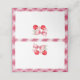 Fügen Sie Ihrem Babyduschtablett ein hübsches und charmantes Detail mit unserer hochgeklappten Platzkarte zum Kirschthema hinzu. Diese Karte mit Aquarellkirschen, die mit einem rosa Bug verbunden und von einem Gingham-Rahmen gerahmt sind, eignet sich hervorragend für Gastsitze, Lebensmitteletiketten oder Desserttische. Voll anpassbar, um Ihre Veranstaltungsfarben zu erfüllen und personalisiert mit Namen oder Text Ihrer Wahl. Koordiniert wunderschön mit der Cherry Baby Shower Kollektion.