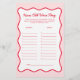 Suchen Sie nach Ideen für Babydusche? Probieren Sie unser "Cherry On Top Baby Shower Raten Sie das Alter Spiel!"! Ideal für einzigartige Babyduschspiele, passt es zum Oberthema Babydusche. Feiern Sie Ihre Kleine mit dem "sie ist die Kirsche auf der Spitze"-Gefühl, ideal für valentinische Babydusche Ideen oder ein Babyduschthema im Februar. Egal ob Sie eine Baby-Bogen-Dusche planen oder eine Erdbeerdusche zum Thema haben, dieses Spiel ist ein lustiger Weg, um Ihre kleine Kirsche auf dem Top-Thema Babydusche zu bezaubern.