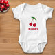 Ein Babykarosserieanzug mit roten Kirschen, seinen grünen Blätter und einem anpassbaren Text: ein schönes Geschenk für ein Neugeborenes!