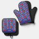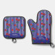 Cherry Berries Red Pattern Modernes Schönes Blau Ofenhandschuh & Topflappen-Set
