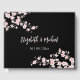Pretty apricot cherry blossoms on a black background. With a guestbook text and a calligraphic handwritten script.